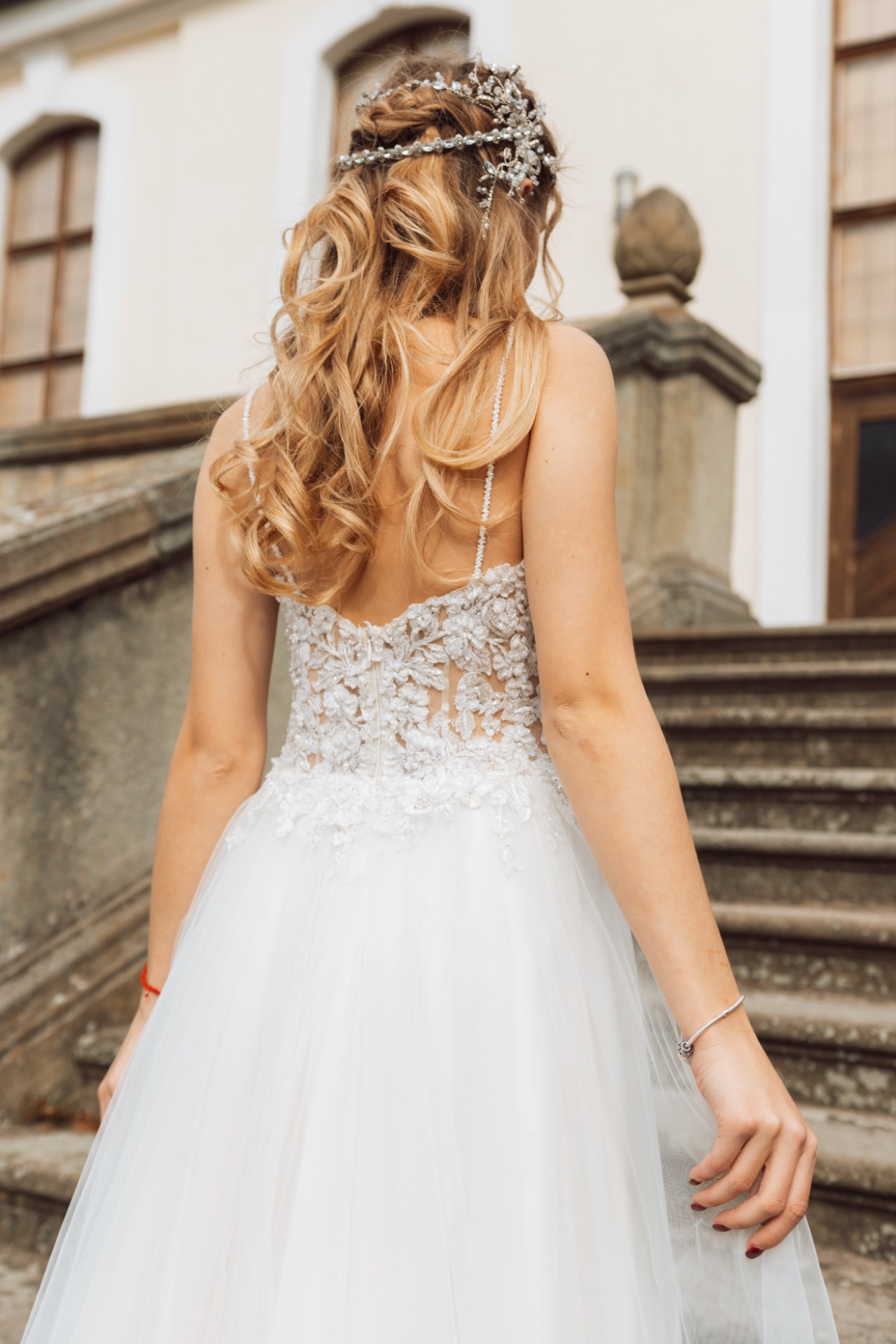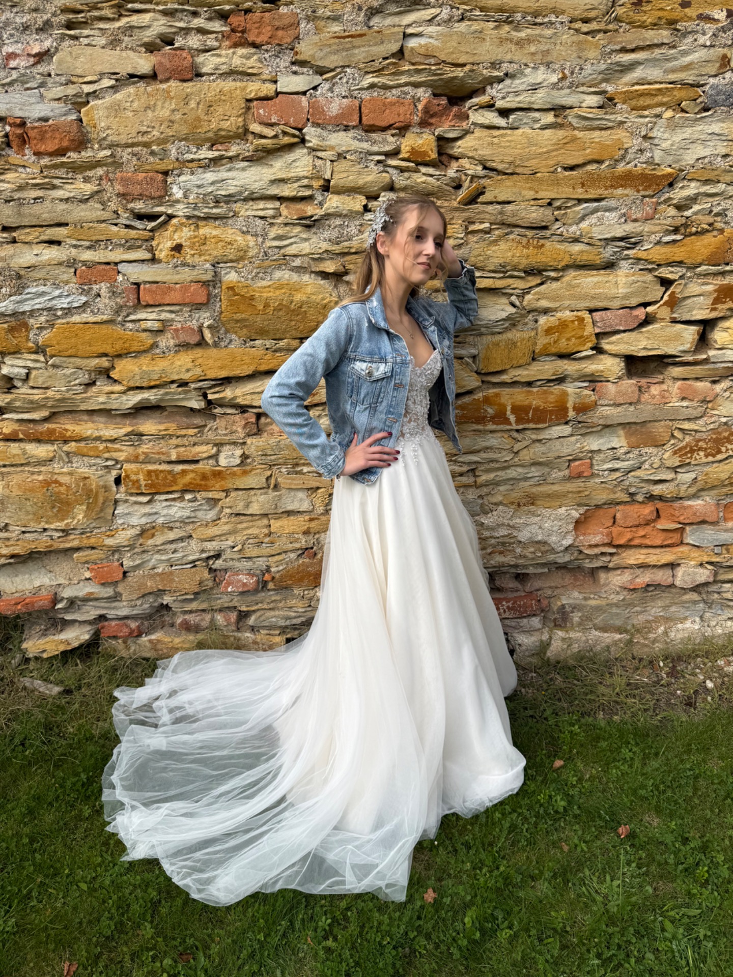 krásné lehké svatební šaty vhodné na léto, jsou velmi vzdušné a zároveň zdobené , šaty mají odepínací tren/ vlečku po obřadu můžete jednoduše odepnout, cena půjční na 6 dní je 15000 kč a prodeje 35000 kč