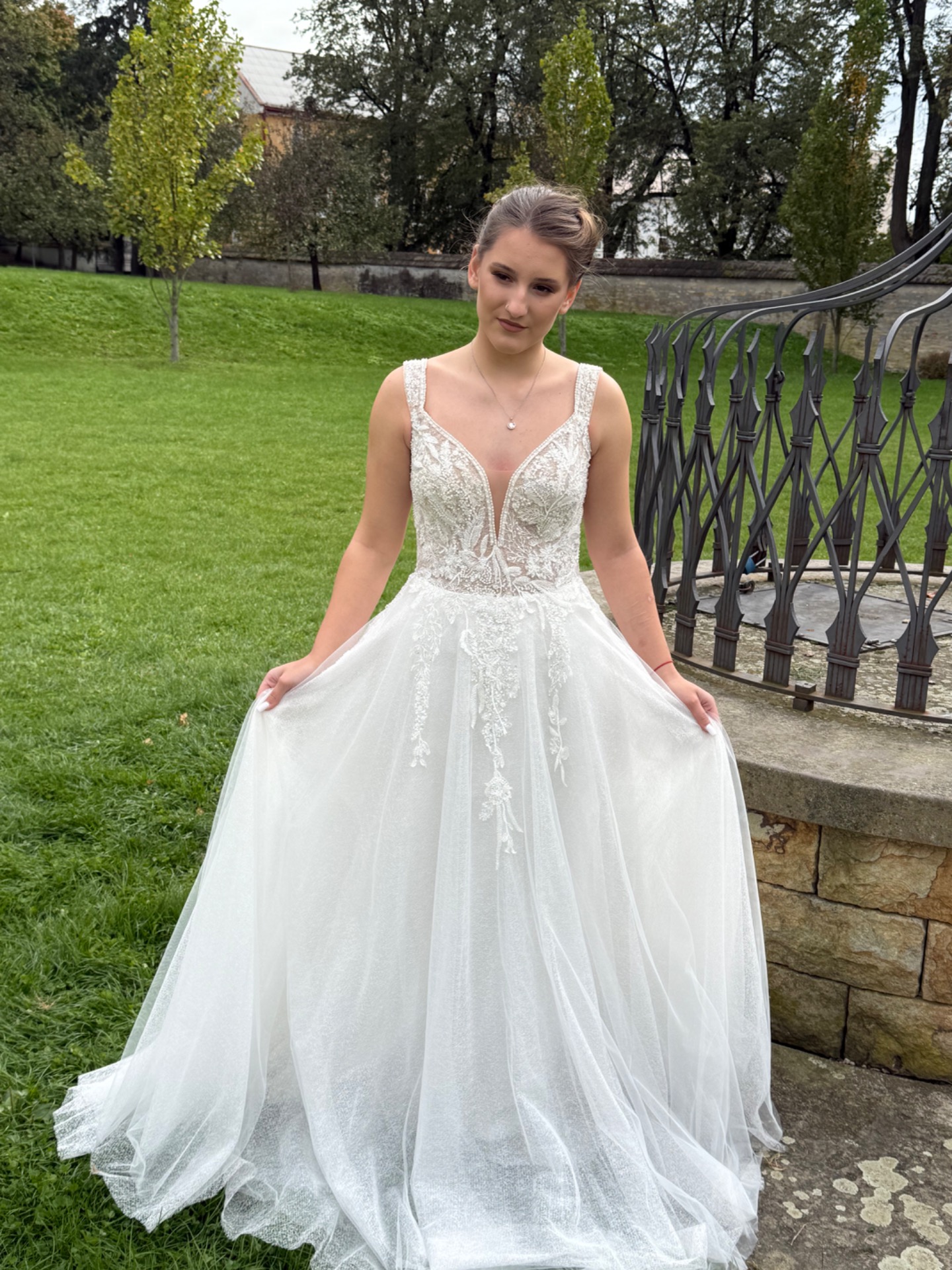 celotřpytivé šaty, vyšívané ručně korálky ohromí celou vaši rodinu, šaty sedí na velikost 36-38, cena půjčovného je 13000 kč a prodeje 26000 kč